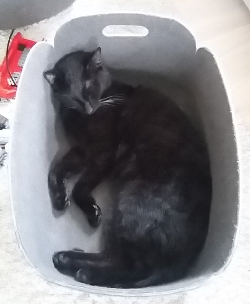 Katten kom hjem av seg selv etter å ha vært borte en uke. Sulten og tynn og veldig klar for kos så har nok vært rundt omkring ute.