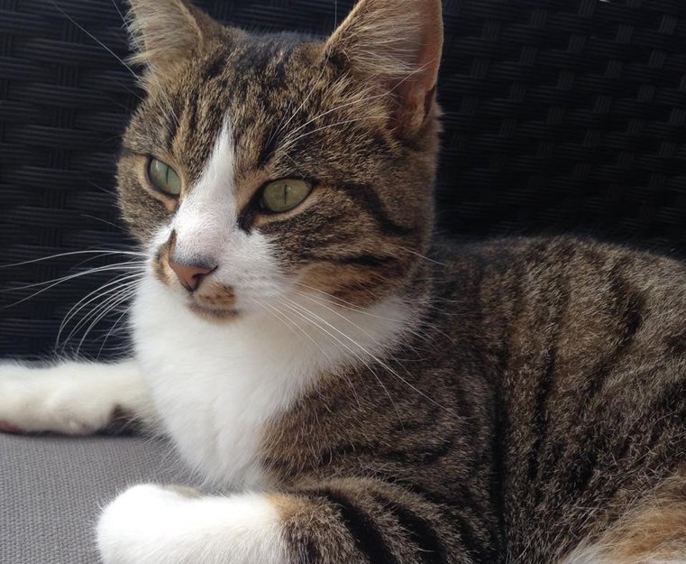 Etter å ha savnet katten vår i over en uke, fikk vi en telefon fra Romerike Folkehøgskole med beskjed om at de hadde hatt en katt på besøk i noen dager, og den liknet veldig vår katt. Hun hadde vært innom og fått mye kos der. I kveld fant vi henne utenfor skolen, og kunne ta henne med hjem, hel og frisk og fin! Hun har spist mye, og sovnet på ullteppet sitt. Vi er veldig glade for at det ikke hadde skjedd noe med henne. Takk til alle som har delt annonsen fra dyrebar.no!