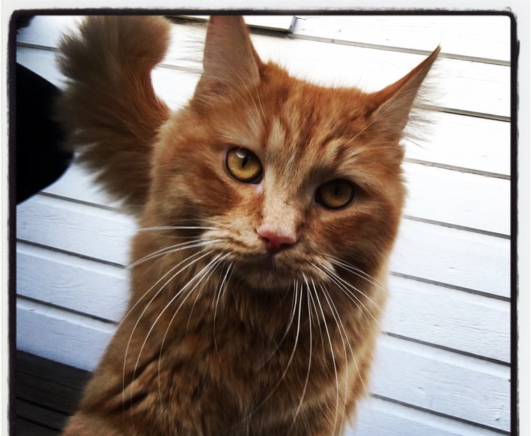 Snill og menneskekjær katt, som er dypt savnet! Han lyder navnet sitt, og maler høyt når han blir strøket med pelsen. Han har orange lett stripet pels, og er delvis langhåret.
