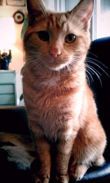 Kopper er en innekatt. Han er ikke chippet men kastrert. Han har aldri vært ute før så han er nok meget redd.