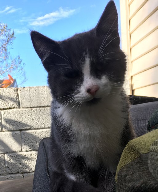 Bodd på verandaen vår siden i går, veldig glad i mennesker og kos.
