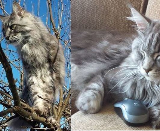 Semi langhåret, lang, slank med symetriske tegninger med hvite ringer rundt øynene. Litt hengebuk. Kastrert og chipet.