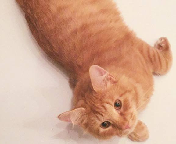 Han er ingen sitte på fanget katt - men han liker kos på sine premisser. Han er fortsatt kattungeleken men han ser ut som en fullvoksen pus. Katten veier nok litt over 4 kg og er STOR.