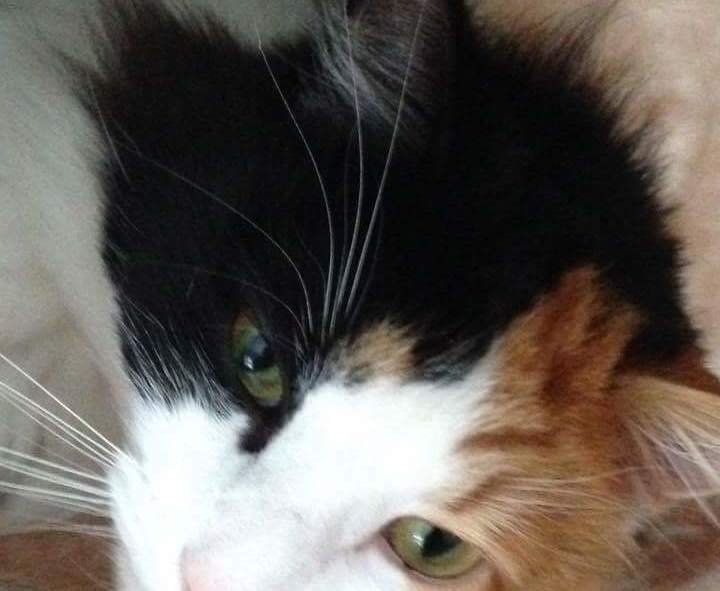 Zelda har vært borte i 5 uker. Hu er ca 4 år, chippet og sterilisert. Hu er veldig redd og skeptisk til alt og alle. Det er derfor ikke sikkert at hun kommer frem hvis man roper på hu. Vi har aldri opplevd at hu har gått langt unna huset, men vi flyttet fra Vivestad i juni så er vi litt redde for at hun er på vei dit.