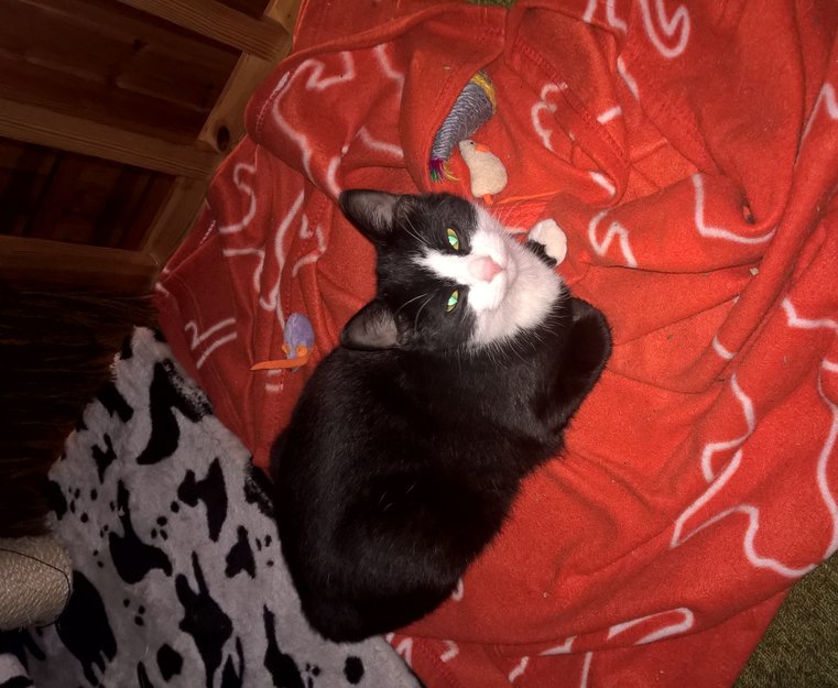 Ren, svart og hvit hannkatt på ca 6 mnd. Ukastrert.