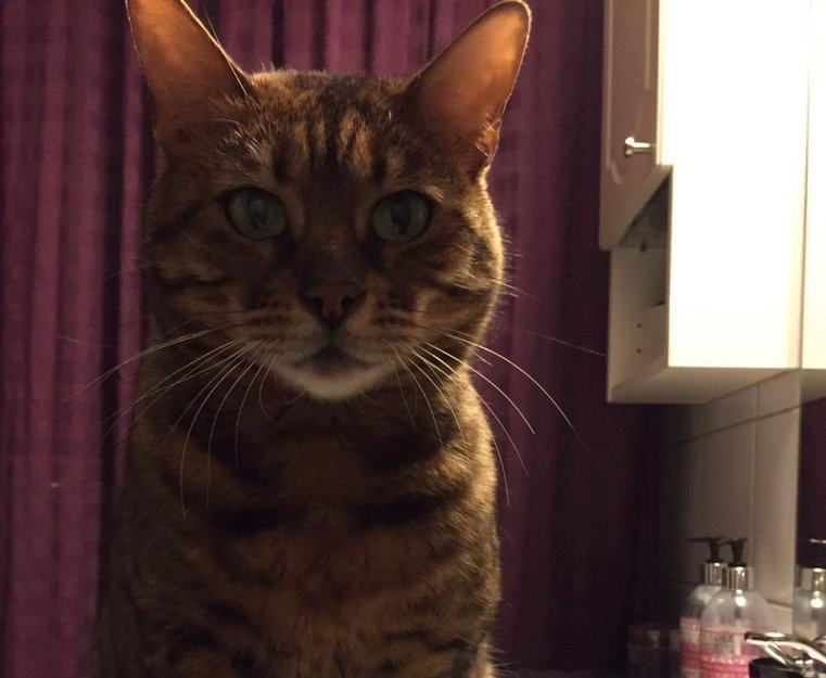 Vi flyttet lørdag 1. Okt. hit til Asker og har hatt henne inne en uke før hun fikk gå ut. Vi hadde med oss to katter, bengalen som et min samboer sin og min. Begge er steriliserte, men mistenker at min katt har jaget henne vekk, da min ikke har kommet overens med henne i det hele tatt. Bengalen har aldri vært borte så lenge før. Hun er renraset bengal med svarte striper/prikker i en brunorange pels. Hun har brukt å komme når vi roper navnet hennes, men ikke sett eller hørt noe. Hun mjauer også mye og til tider høyt.