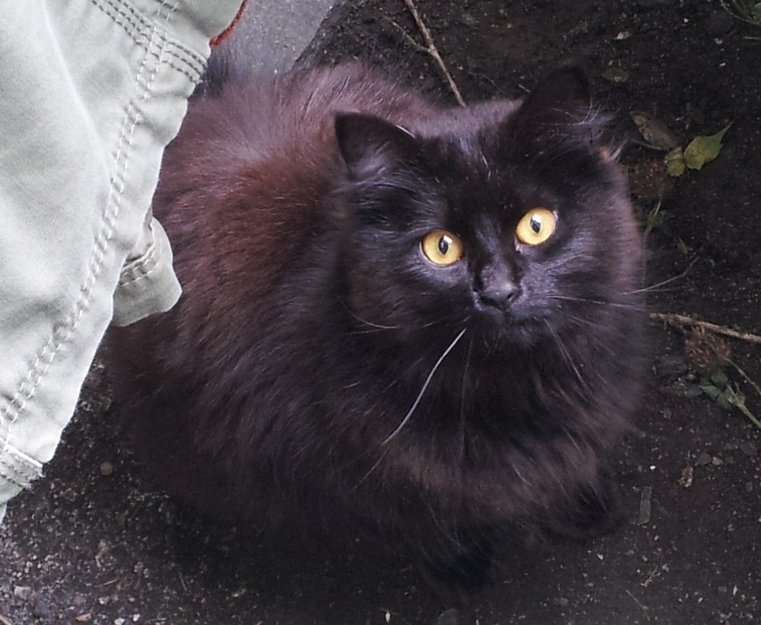 Da, er min aller kjæreste Kessi Esmeralda etter 6 mnd. på vandring blitt funnet, og jeg har virkelig ikke ord for hva som gikk gjennom kroppen og hodet mitt da to bilder plutselig tikket inn på mobilen min, hvor dette lille runde svarte fjeset ikke var til å ta feil av, hun hadde dukket opp på verandaen til en familie sporadisk den siste uken da de hadde satt ut mat til en katt som de hadde mistet, hun hadde også spist smuler fra fuglebrettet ,og da forsto de jo at dette er en katt uten hjem antageligvis, og fant annonsen min her inne. Utrolig flott at denne siden finnes , TuUUUUSEN taaaakkkk.