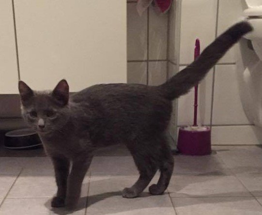 En familie kom innom med katten da de fant den vandrende langs skogen i Gråbeinstien på Vinterbro. De leverte den til Follo Dyreklinikk for å sjekke om den var chippet. Den er veldig ung, kanskje bare 4 mnd, så de var bekymret for den.