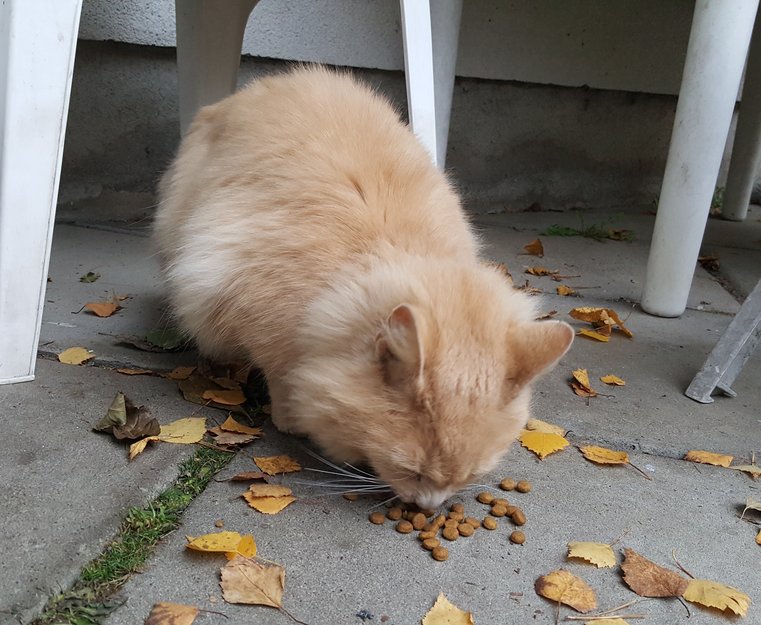 Katten kom majuende inn på eiendommen. Den er kosete. Vi tror det er en jente