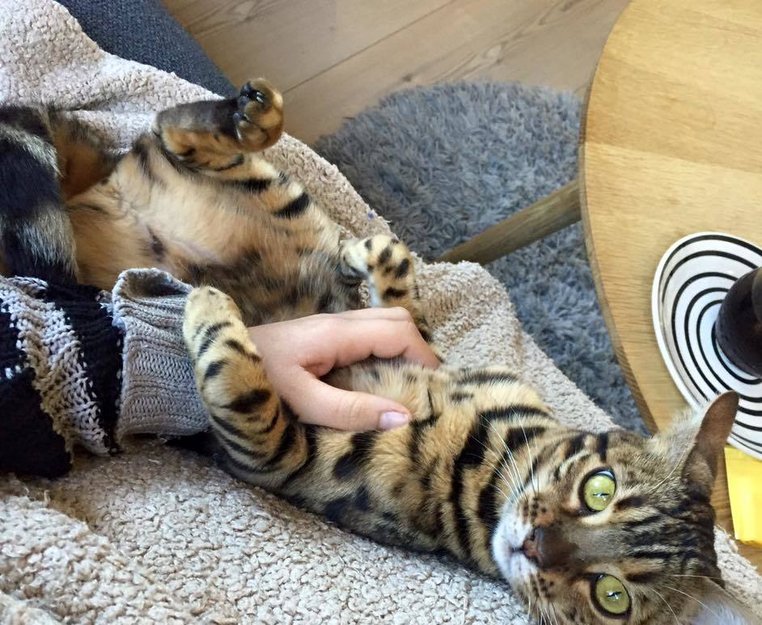 Bengalhunn har vært borte siden fredag morgen. Pleier aldri gå langt unna hjemmet, og kommer alltid når jeg roper. Kan hende har hun blitt låst inne et sted. Hun er lysebrun med sorte flekker. En liten knekk ytterst på halen- Er en forsiktig frøken som er usikker i møte med fremmede. Mjauer høyt og med sterk røst.