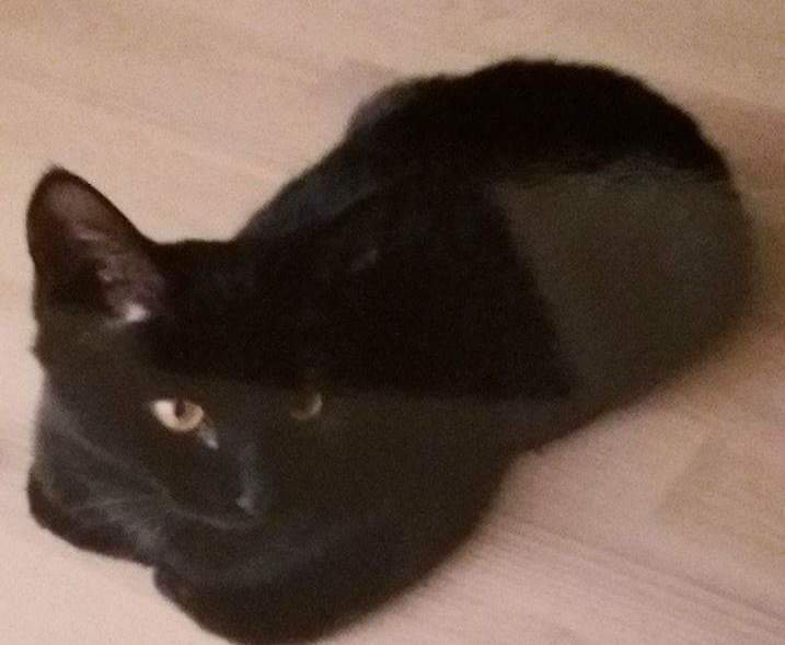 Slank og med gule øyner. Er 3,5 år gammel. Er ID- merket men har ikke nr. Har et grått og rosa halsband med rosa kule, og tlf. nr. Dersom noen opplysninger om henne (gode eller dårlige) så vær vennligst og ring mobil : 41697088.