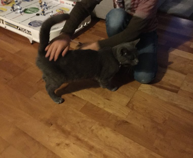 Katten har vandret rundt i Lura Skole-området i noen uker. Den endte opp med å komme på døra vår, så vi lot den være hos oss.