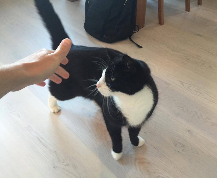 Svart og hvit hannkatt har bodd på Øvre Prinsdals vei ved Hauketo frem til juli 2016, flyttet til Lambertseter og har stukket derfra to ganger før. Han hver gang funnet ved siden av sitt tidligere hus og returnert til hans nye adresse. Nå er han på frifot igjen og har ikke vært hjemme på noen dager. Det er sterk mistanke at han er tilbake på gamle trakter.