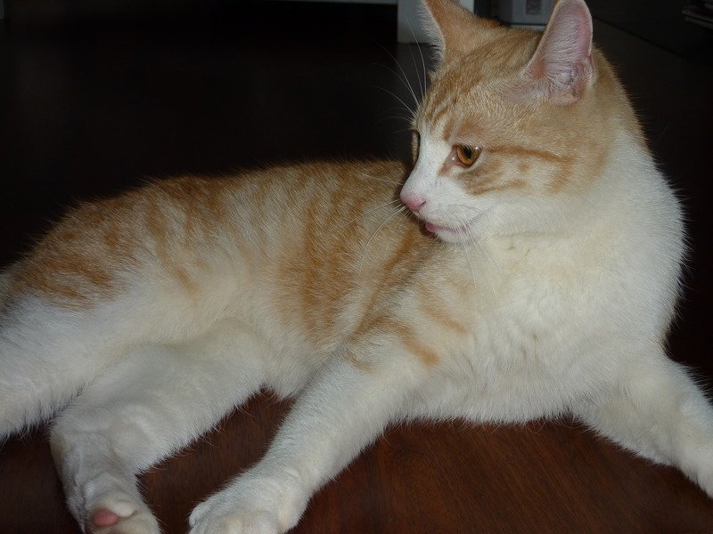 Rød og hvit ung hannkatt, snill og vant til mennesker. Ikke kastrert eller ID-merket.