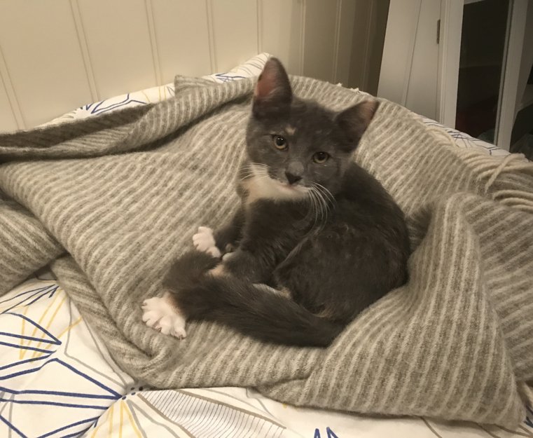 Grå, hvit og hudfarg hunnkatt ble funnet i Nedre Eiker