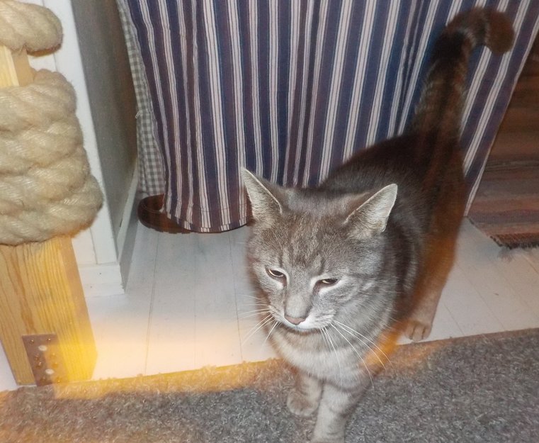Den har vært innom ved flere anledninger. Den vil gjerne inn og spise og sove/slappe av, men pga gnisninger (catfights) mellom denne katten og mine egne, må jeg heretter nekte den å komme inn.
