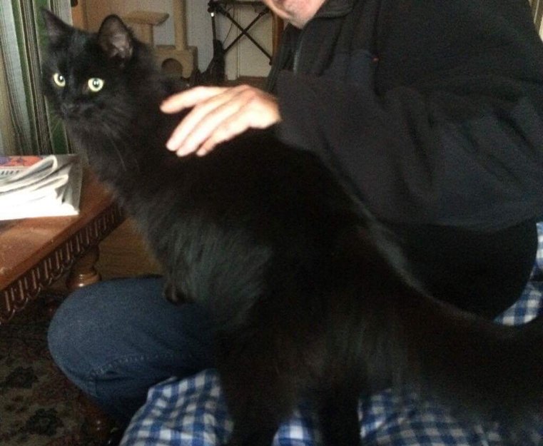 Snorre er en vakker, stor hankatt på 16 måneder. Sort med en liten hvit flekk i halsen. Myk, langhåret pels, med flott, buskete hale. Han har dessverre verken halsbånd eller er ID-merket/chippet.