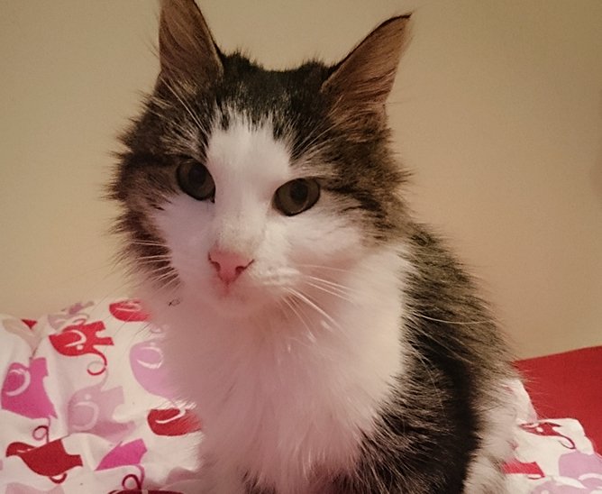 Denne søte lille katten dukket opp i fjøset vårt torsdag kveld. Dehydrert, avmagret og i svær dårlig forfatning. Ikke id-merket/chippet. Sosial og tillitsfull, så det er vanskelig å tro at den ikke er savnet!