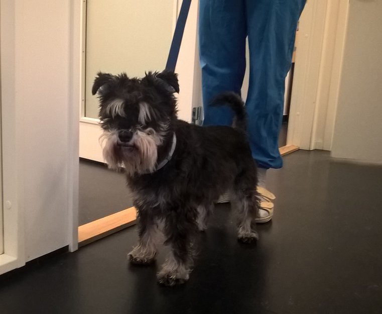 Bildet til hunden ble delt på Facebook, hvor eieren så det. De kontaktet klinikken og hentet han samme kvelden :)