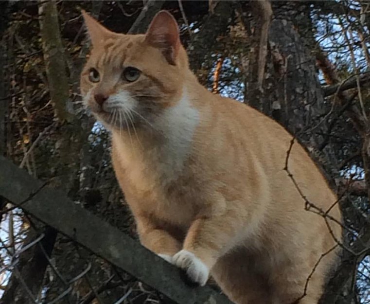 Katten har oransje pels, viktigste kjennetegn er at han har ikke noe hale. Han er UTEN HALE.