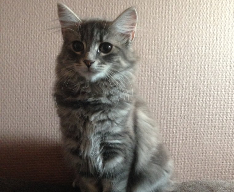 Kleo er grå/spraglete og langragget. Hun hadde på seg et grått halsbånd med et rødt hjerte når hun forsvant. På det røde hjertet står navnet hennes "KLEO" og et telefonnummer. Mulig hun har mistet det. Hun er glad i oppmerksomhet, men er litt sky i begynnelsen. Meget kosete.