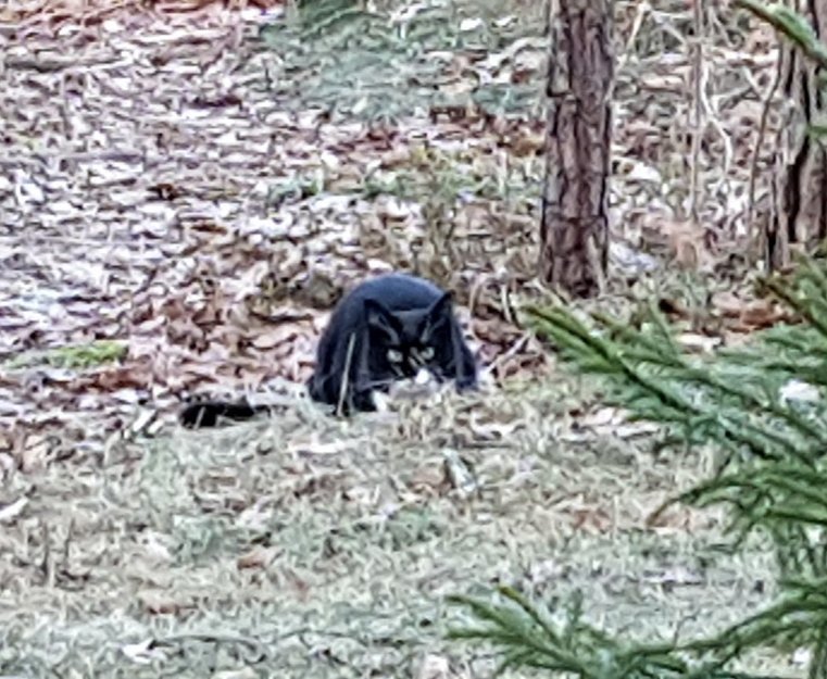 Ukastrert, tam stor svart og hvit hannkatt oppholder seg på Fossan øst for Bispeveien rett nord for Revetal.