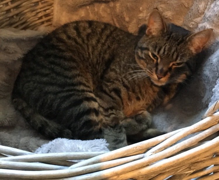 8 år gammel. Liten av seg og litt redd for mennesker. Bodd flere steder på mosseskogen så han er godt kjent her. Redd han kan ha havnet i garasjer eller lignende.