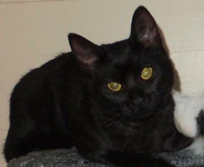 Helsvart kastrert hannkatt med gule øyne. Lang og slank. Han har hvit underpels, og studerer man den nærmere ser man at det er "tigerstriper" i pelsen. Skinner i brunt i direkte sollys. Svært sosial katt med mørke mjau. Hadde på seg et reflekshalsbånd da han forsvant. Er chippet.