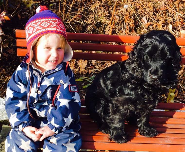 Helt sort tispe Engelsk cocker Spaniel, veldig glad og liten.