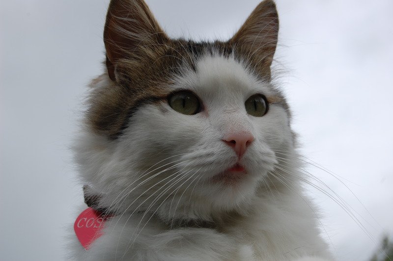 Cosmo har på seg en halsband med et hjerte med navn og tlfnummer og et refleks. Denne kan han selvfølgelig ha mistet.