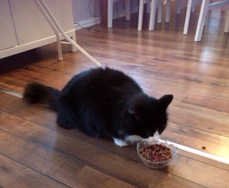 Simba ble sist sett på kvelden 7/1-17. Han er snart 9 år gammel, svart og hvit, langhåret.