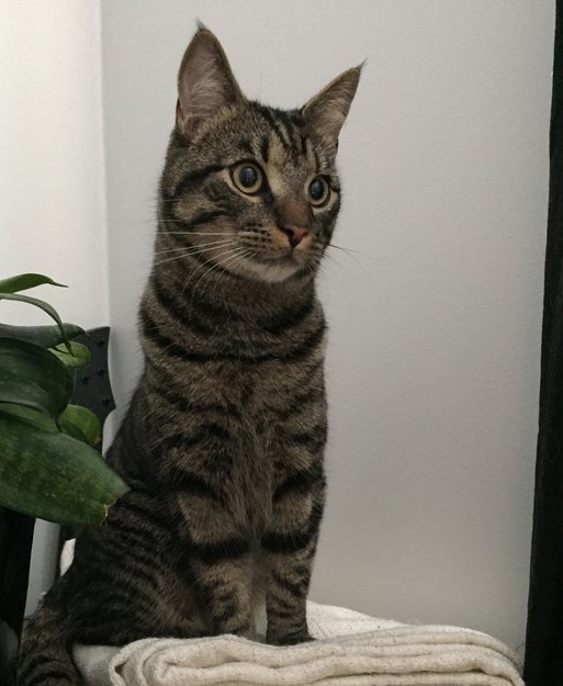 Hannkatt funnet i 2.etg i lavblokk på Valentinlyst. Stod sammenkrøket og skalv i et hjørne.