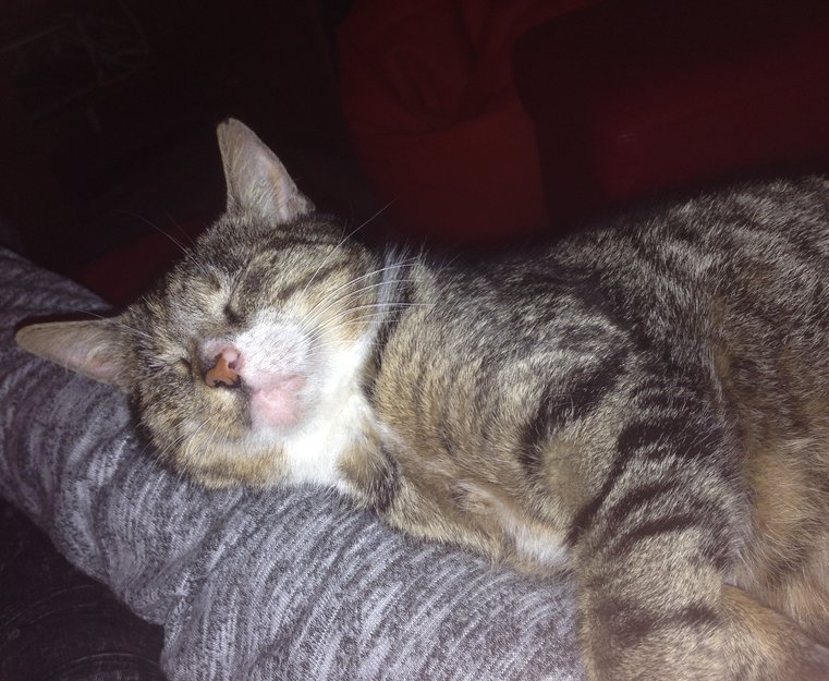 Voksen katt, men relativt liten. Sky, vanligvis redd for fremmede.