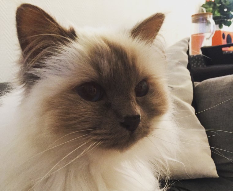 Hvit katt med beige hale og gråbrun snute (hellig birma) forsvunnet fra Vigrestad