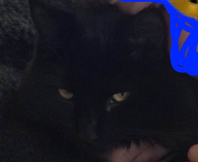 Svart, langhåret, gule øyne. Hadde blått halsbånd (med tlf.nr) med liten bjelle på da hun forsvant.