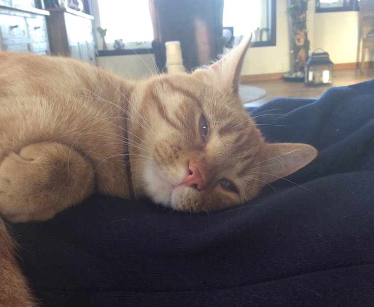Denne pusekatten har besøkt oss på Nedre Sofustrøa 9, Bosberg hver dag den siste uken. Det er en oransje guttepus. Katten er ung, vi tror at den kan være rundt ett år. Han er kjælen, tillitsfull og velpleiet så noen savner han sikkert. Vi gir ham mat men vi har allerede en katt og har ikke tenkt å ha flere. Hvis ingen tar kontakt med oss i løpet av uke 11, da leverer vi katten til Dyrebeskyttelsen i Trondheim.