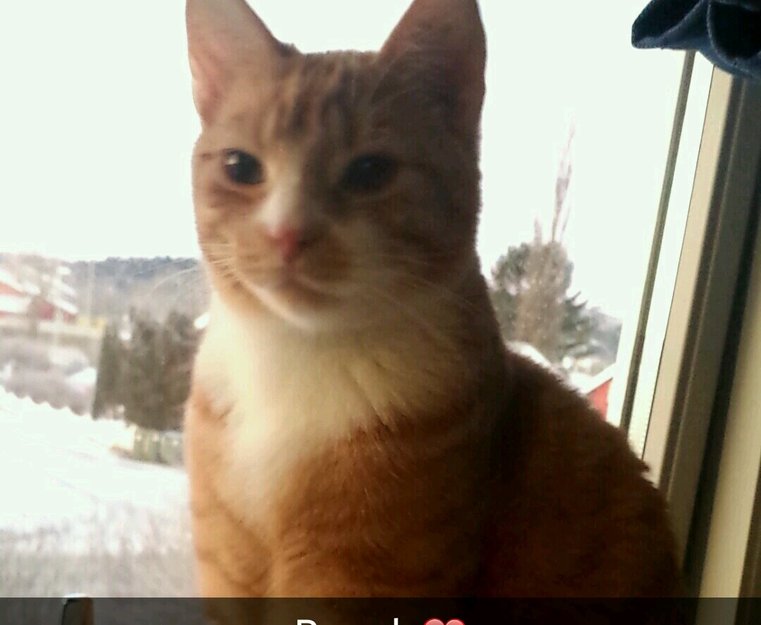 Brandy er en gul/oransje stripet hannkatt på ti måneder. Han har vært innekatt siden han kom til oss som omplasseringskattunge i september, men klarte altså å «bryte seg ut» gjennom myggnettingen foran et vindu i andre etasje sent fredag kveld, 10. mars fra Slettevegen 21 på Kvislabakken i Stjørdal.