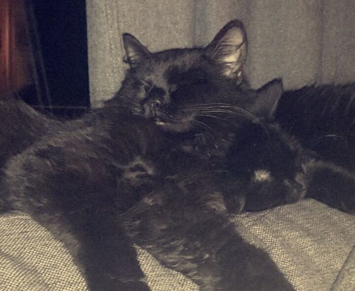 De er begge sorte men Sabrina er litt brunlig i fargen i sollys, øyenfarge skifter mellom grønn og gyllen/kobber brun.