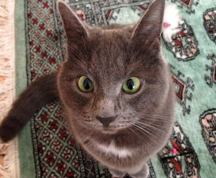 Hun er omtrent 4 kilo dvs veldig liten for å va voksen katt.