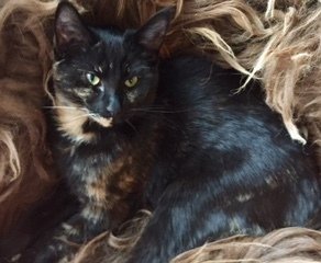Surra er halvt Main Coon, som betyr at hun kan bli større en den vanlige huskatten. Hun er ennå ikke ferdig utvokst, men ser ut til å få en lang kropp.