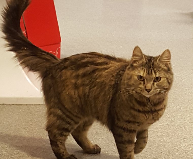 Brun/sort/stripete hunnkatt ble funnet i Oslo