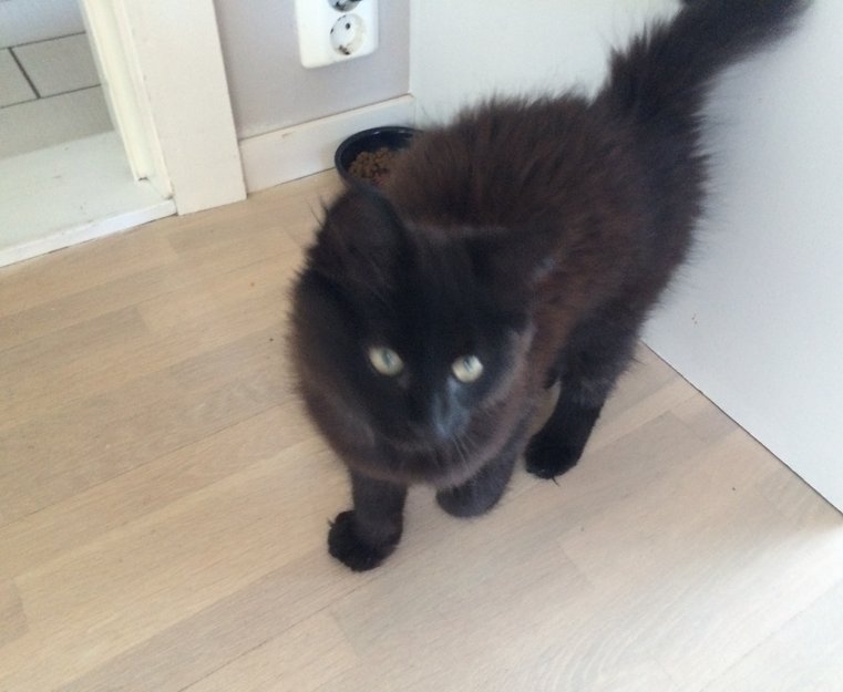 Jeg fant pus på en av mine mange leterunder. Han var ca 1 km fra hjemmet. Han mjauet og kom meg i møte da han så meg. Lettelse!