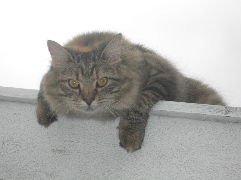 Mira er en langhåret hunnkatt i flere farger - brunt, grått, innslag av hvitt, med en rødbrun flekk på hodet/nakken. Hun har buskete poter og ører, og ser nesten ut som en gaupe. Tillitsfull og sosial.