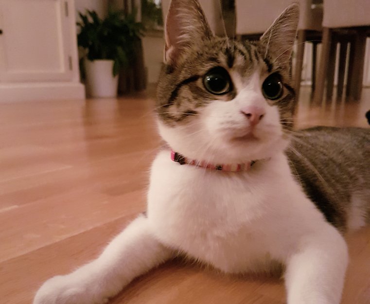 Adoptert fra Dyrebeskyttelsen i oktober 16. Mæud er 9 mnd, går med rosa-stripete halsbånd (hvis dette ikke har falt av), hun er kontaktsøkende og sosial - så hun kan ha fulgt etter noen og ikke funnet veien tilbake.