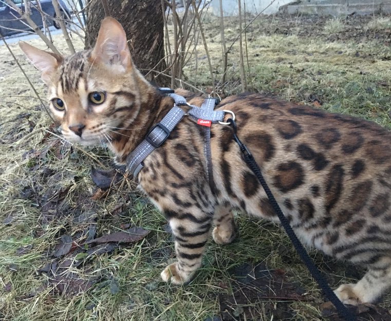Brunspottet med gullfargede øyne. Rundt 4-5 kg
