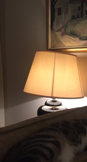 Grå ned hvite striper og hbit mage. Ganske liten og tolig. Aldri vært borte så lenge
