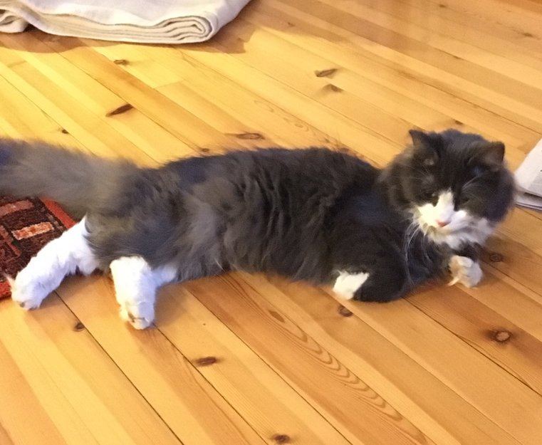 Ingen henvendelser mottatt. Veterinæren bekreftet at katten ikke hadde chip, ikke har blitt behandlet for midd eller orm, o.s.v. så den får det bedre hos oss enn der han evt. kom fra... Mulig den ikke har hatt noe hjem? Det har den hos oss nå...