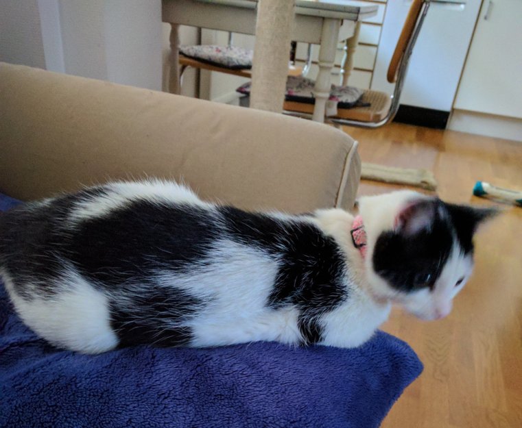 Fant en ung katt som løp rundt og mjauet veldig høyt. Virket som den var veldig stresset og sulten, så jeg ga den kattemat og vann og tok den med inn for å lete etter eier.