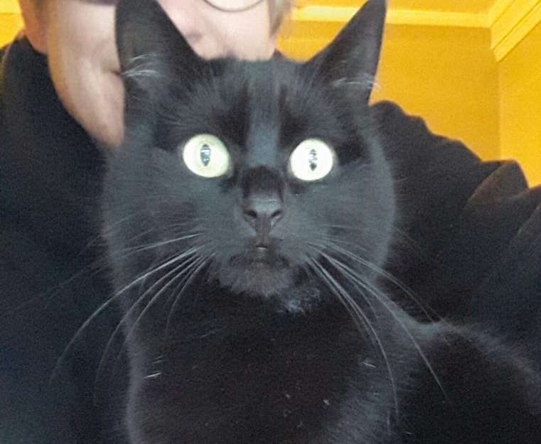 Helsort pus har vært her i Sponheimveien i Oredalen hele dagen og miauer veldig. Den er ung, kjælen og nydelig i pelsen.