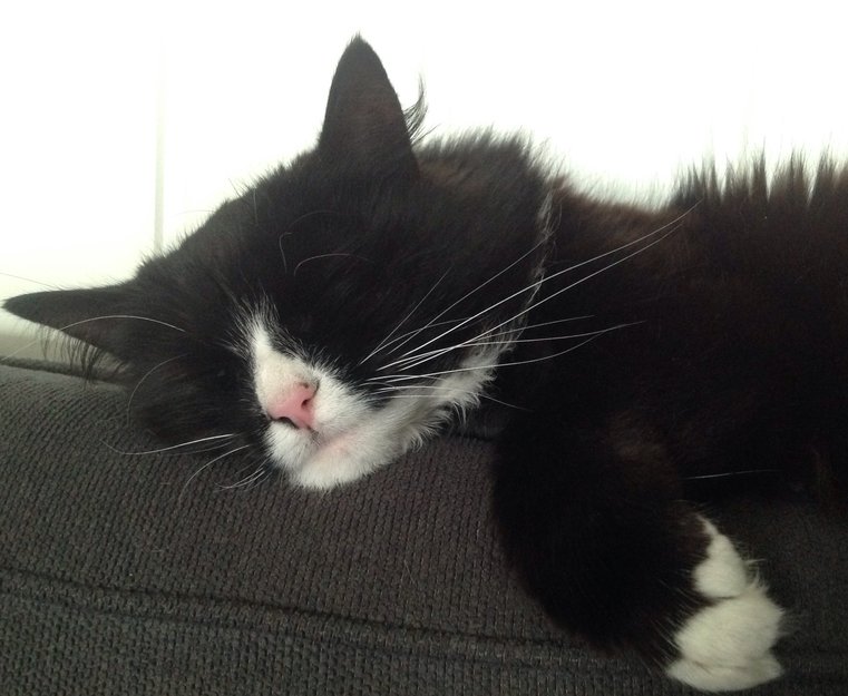 Katten er liten og nett. Er ikke vant til å kjøre bil, da mjauet den svakt, så ingen skravlepus.
